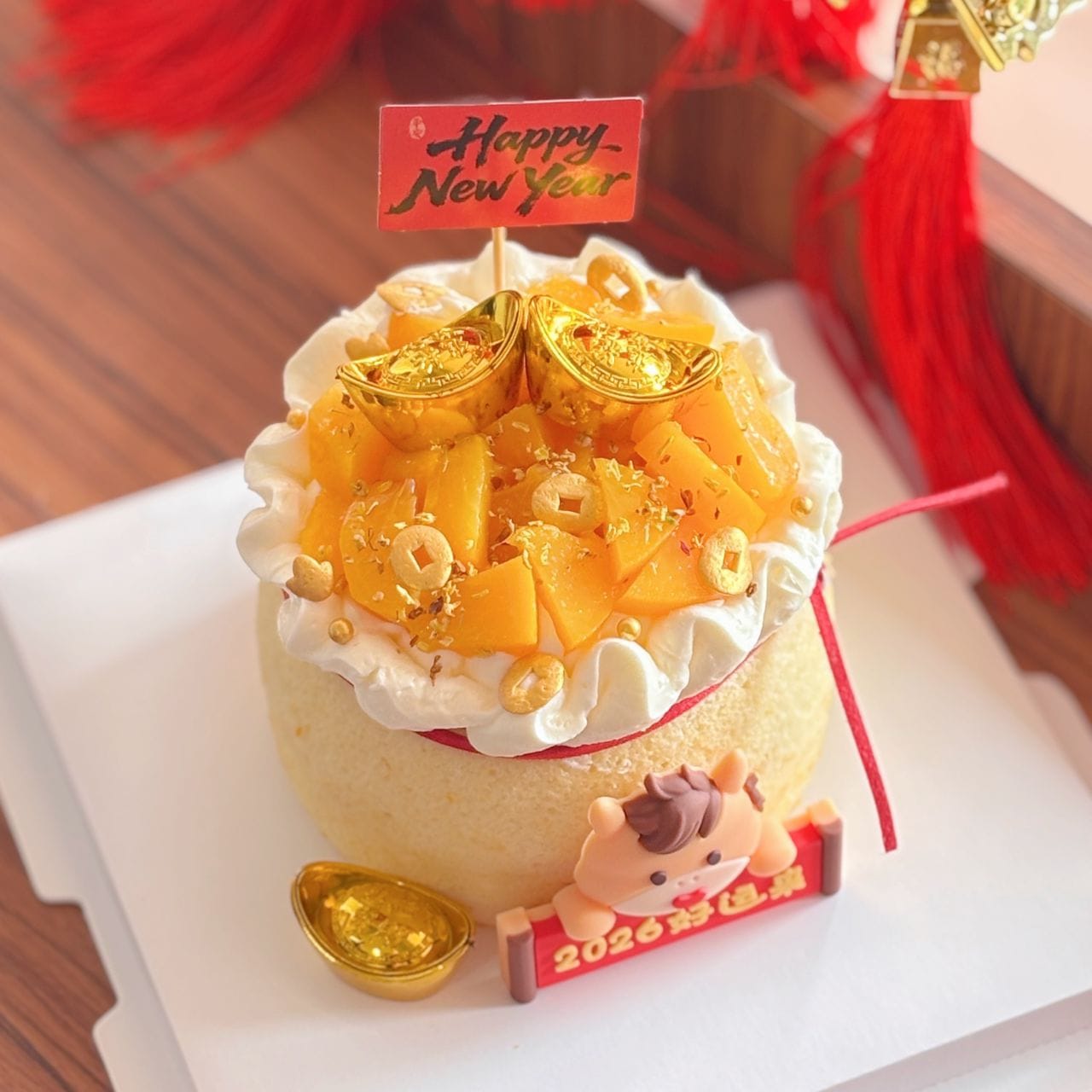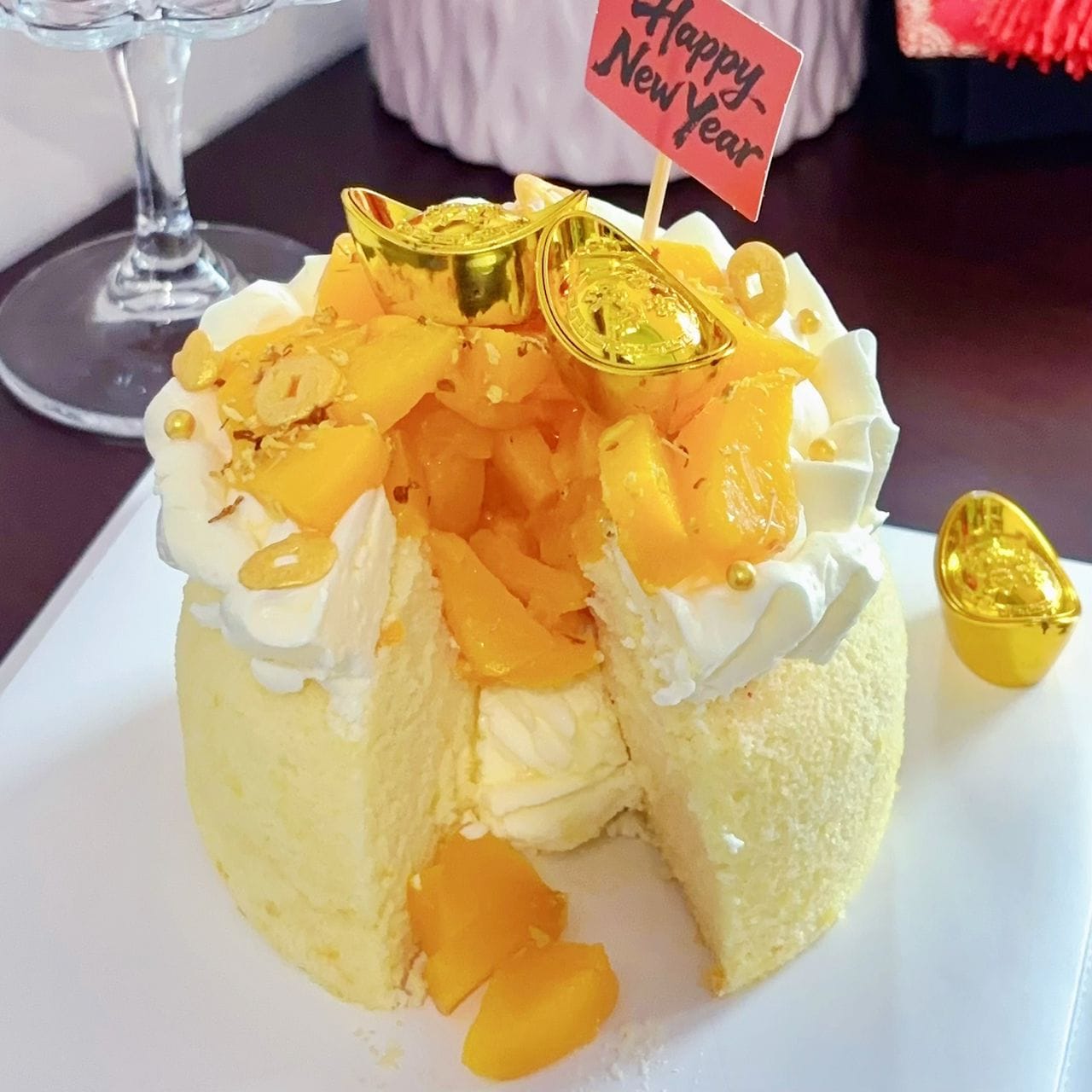 Made with fresh orange chiffon, filled with buttercream and plentiful of peach, soft and refreshing.