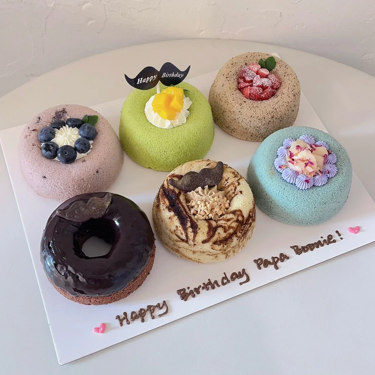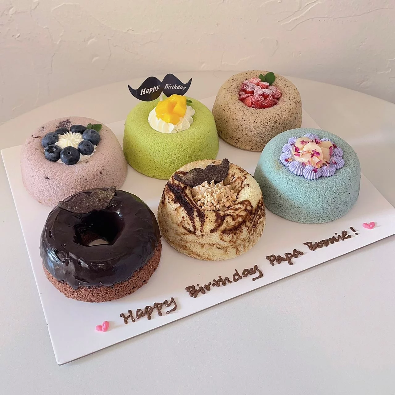 The box includes 6 mini chiffon with fixed flavours below and self made moustache made with chocolate.