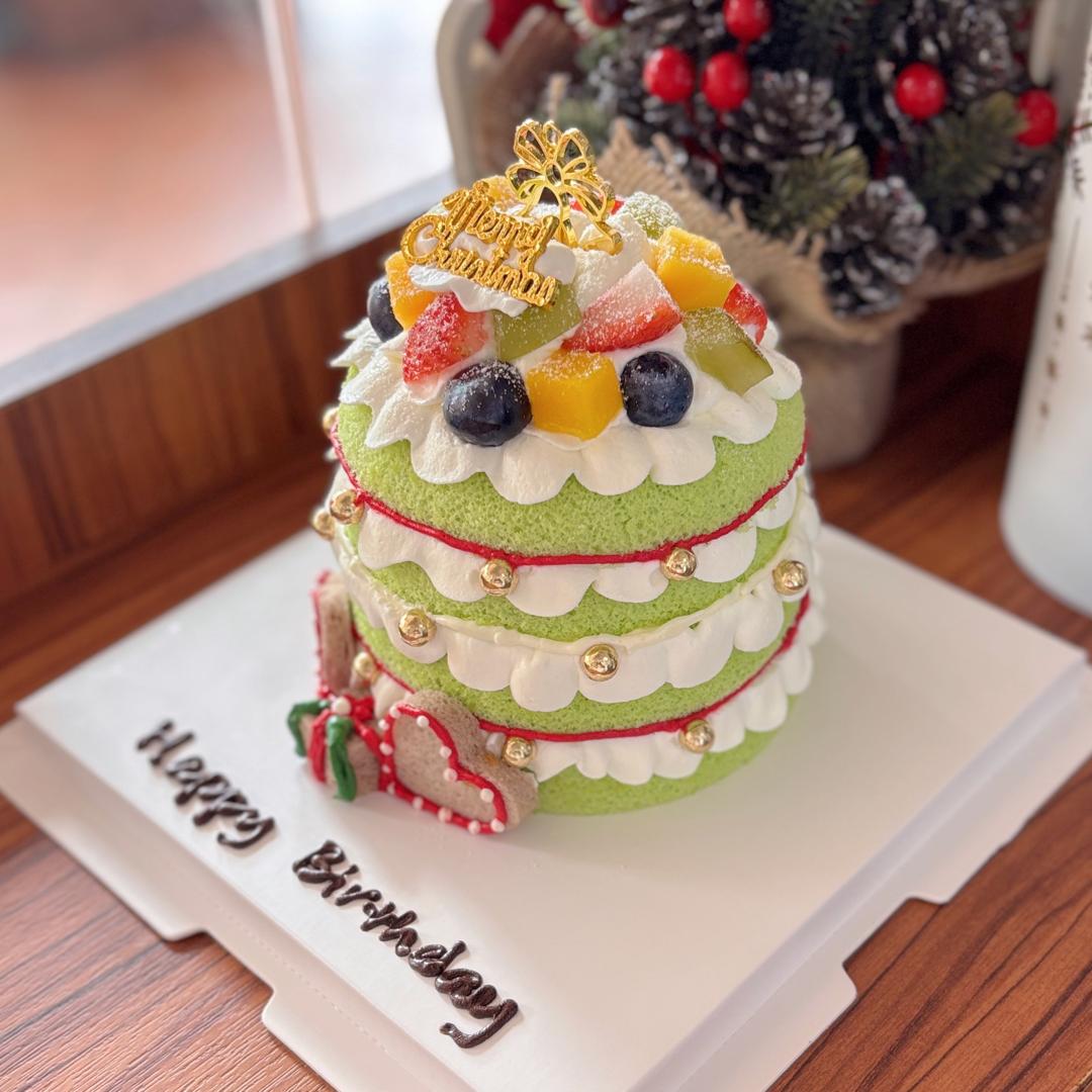 Made with our best seller pandan chiffon mix fruits flavor into this Christmas tree. The cake is 4″ for up to 4 servings.
